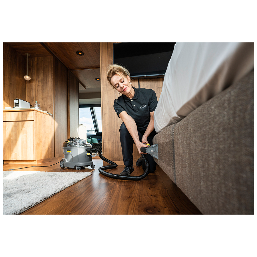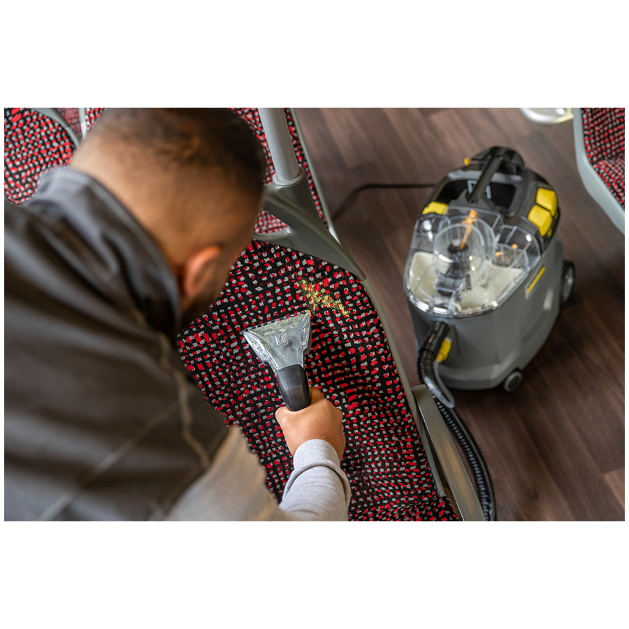 | Opseg isporuke | Kratka mlaznica za presvlake s ručkom Crijevo za prskanje/usisavanje: 2.5 m Kvačica za kabel Uklonjiva 2-u-1 posuda za svježu/prljavu vodu |