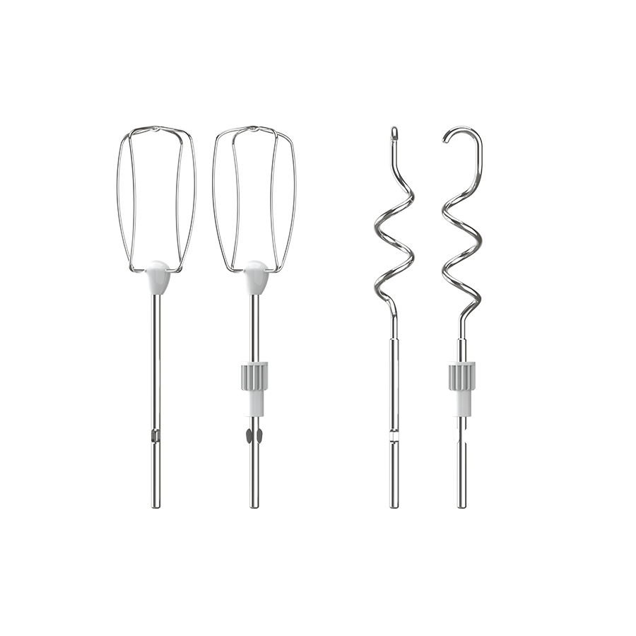Dva inox nastavka osiguravaju sve pripreme do savršenstva, s dva nastavka za obradu teških tijesta, kao i s nastavcima za miješanje krema i laganijih smjesa.