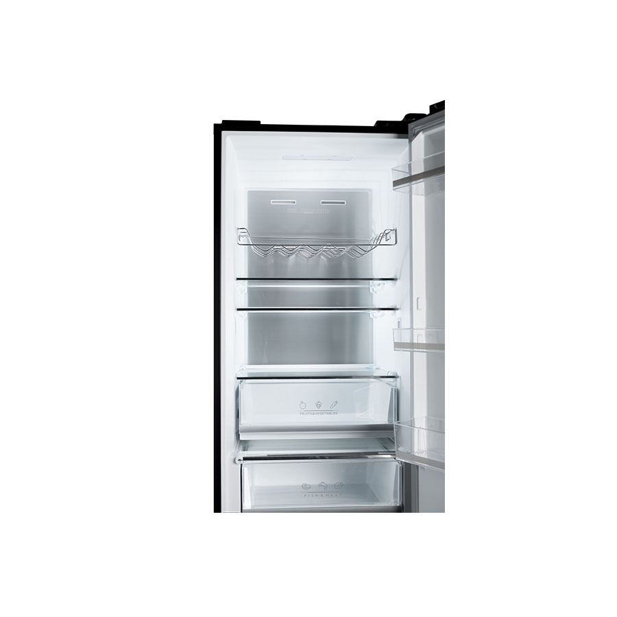 | Karakteristike | Tip Samostojeći Tehnologija hladnjaka No Frost Tehnologija zamrzivača No Frost Ukupna Neto zapremnina (l) 378 Neto zapremnina hladnjaka (l) 256 Neto zapremnina zamrzivača (l) 122 Broj zvjezdica zamrzivača **** Kontrola Digitalna Broj polica u hladnjaku 3 Broj ladica/košara u hladnjaku 2 Broj polica u zamrzivaču – Broj ladica/košara u zamrzivaču 3 Broj polica u vratima hladnjaka 3 Otvaranje vrata Šarke tvornički postavljene na desno, ali promjenjivo Energetska učinkovitost E Razina buke (db) 38 Klimatski razred SN / N / ST / T Materijal – vrata Staklo Boja Crna Širina (cm) 59,5 Visina (cm) 197 Dubina (cm) 65,5 Širina pakiranja (cm) 66 Visina pakiranja (cm) 204 Dubina pakiranja (cm) 70,4 Masa uređaja (kg) 67 Napajanje 220-240 V AC |