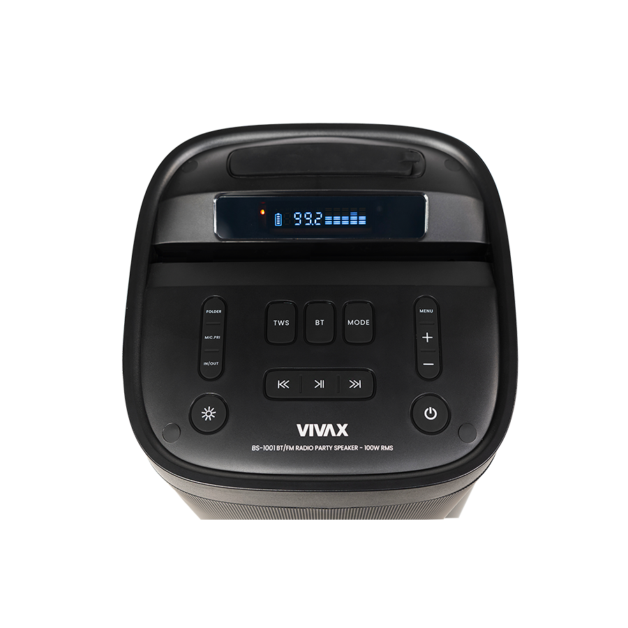 | Karakteristike | Snaga (RMS) (W) 100 Broj zvučnika 4 Širokopojasni zvučnik (W) – Bas zvučnik (W) 80 Srednjotonski zvučnik (W) – Visokotonski zvučnik (W) 20 Kapacitet baterije (mAh) 7500 Napon baterije (V) 12V/7,5A Lead-Acid Napajanje Da Vrijeme punjenja (h) 5-6 Ulaz za slušalice – TF čitač kartice Da MMC čitač kartice – Audio in 1x Audio Out – FM antena Da, Audio kabel Ulaz za mikrofon 1x + 2x bežični mikrofon Ulaz za gitaru Da Audio frekventni pojas 40Hz-18kHz DAB radio Ne FM radio Da PLL/broj memorija 30 Bluetooth Da Karaoke funkcija Da Equalizer funkcija Ugađanje Dubokih/Visokih tonova, EQ funkcije:Flat, Rock, Jazz, Pop, Classic Daljinski upravljač Da Oprema uz uređaj Upute za uporabu, daljinski upravljač, 2x bežični mikrofon, Kabel za napajanje i punjenje baterije Širina (cm) 31 Visina (cm) 31 Dubina (cm) 68 Masa uređaja (kg) 12,17 |