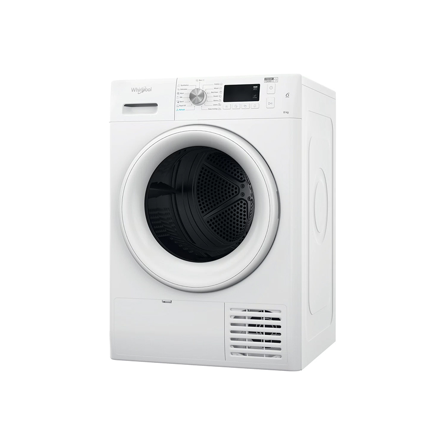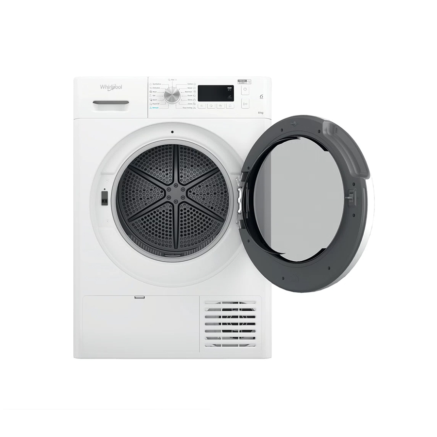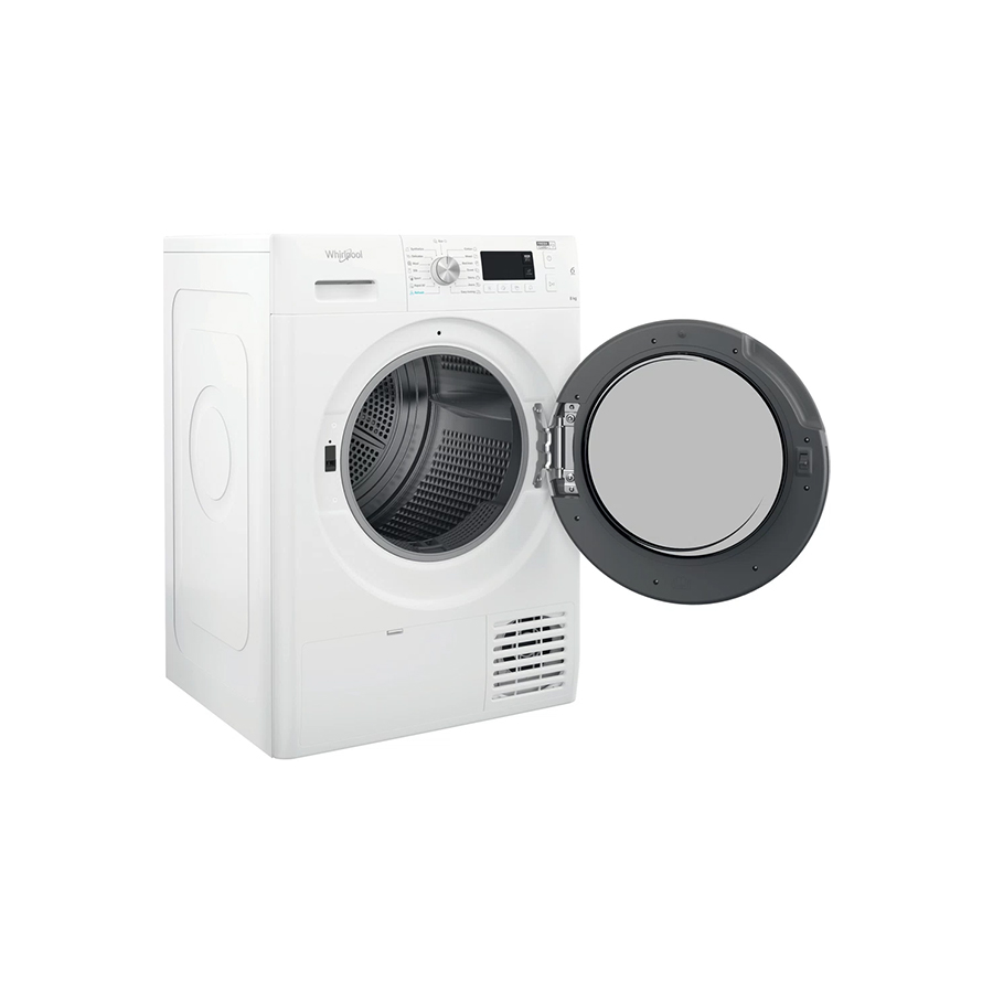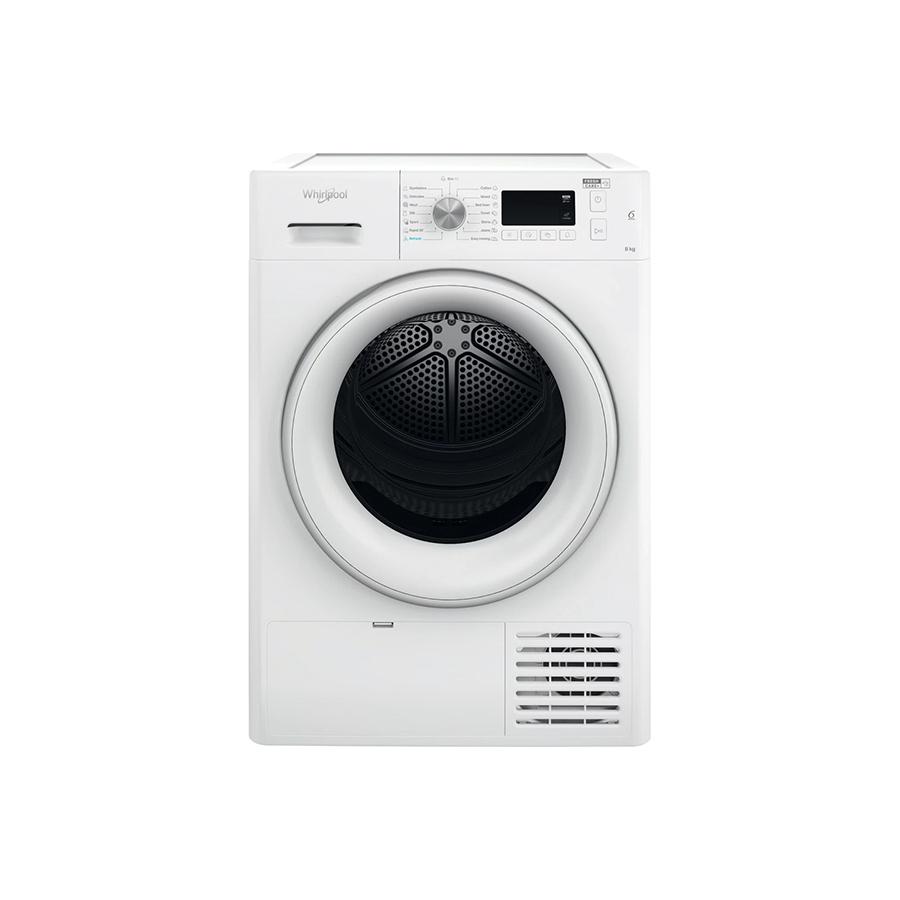 | Osnovne karakteristike | Vrsta instalacije: Samostojeći Tip punjenja uređaja: Prednje punjenje Kapacitet sušenja (kg): 8 Zapremnina bubnja (I): 120 Boja vrata: Bijela Težina (kg): 44 Vrsta zaslona: 7-segmentni / 1-24 h Dužina električnog kabla (cm): 150 Podesive nožice: Da – sve Indikator kraja ciklusa: Da Indikator punog spremnika Okretanje unatrag Učinkovitost kondenzacije: B |
